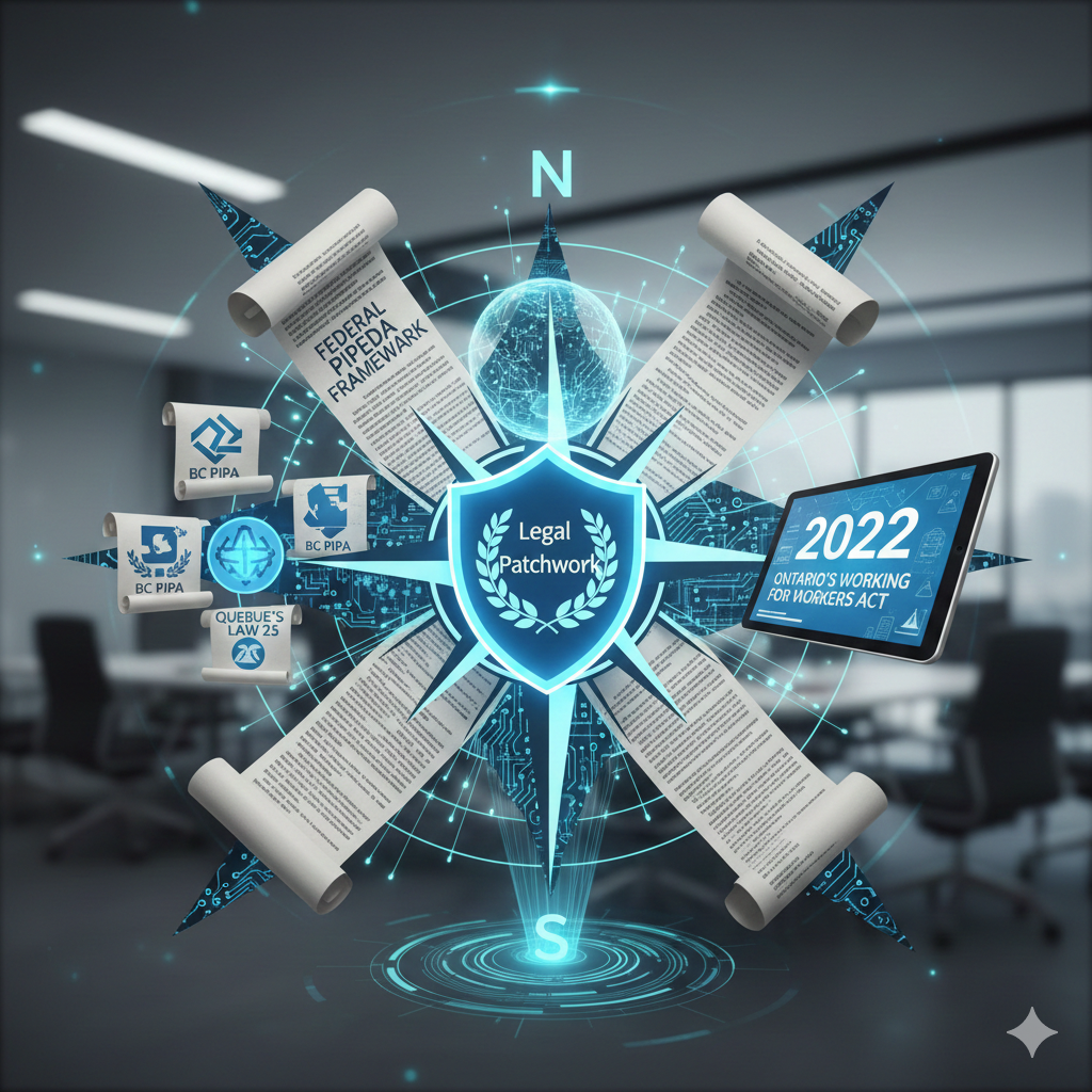 We ensure your monitoring practices align with: The federal PIPEDA framework, Provincial acts like BC PIPA, Alberta PIPA, and Quebec’s Law 25, and Ontario’s Working for Workers Act, 2022