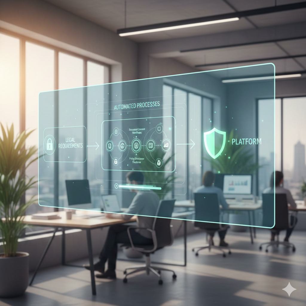 Legal requirements are reduced to simple automated processes thanks to the platform’s structured consent workflows and required policy disclosure features.